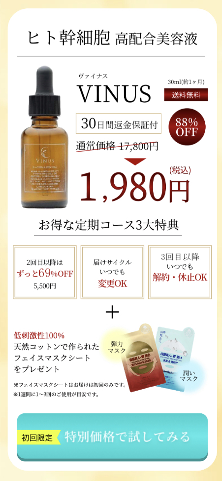 雑誌やメディアで取り上げられて今話題沸騰中の大人気【オールインワン美容液 ヴァイナス】がWEB限定でキャンペーンを実施中!