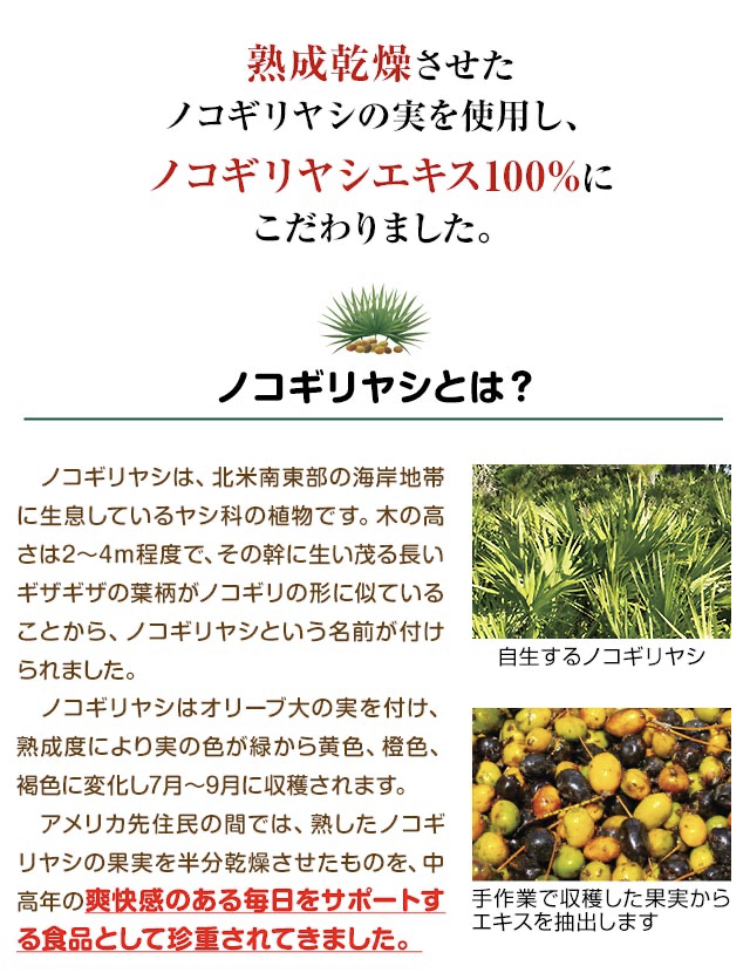 | 1日1粒で続けやすい!ノコギリヤシエキス320mgの高配合を実現!