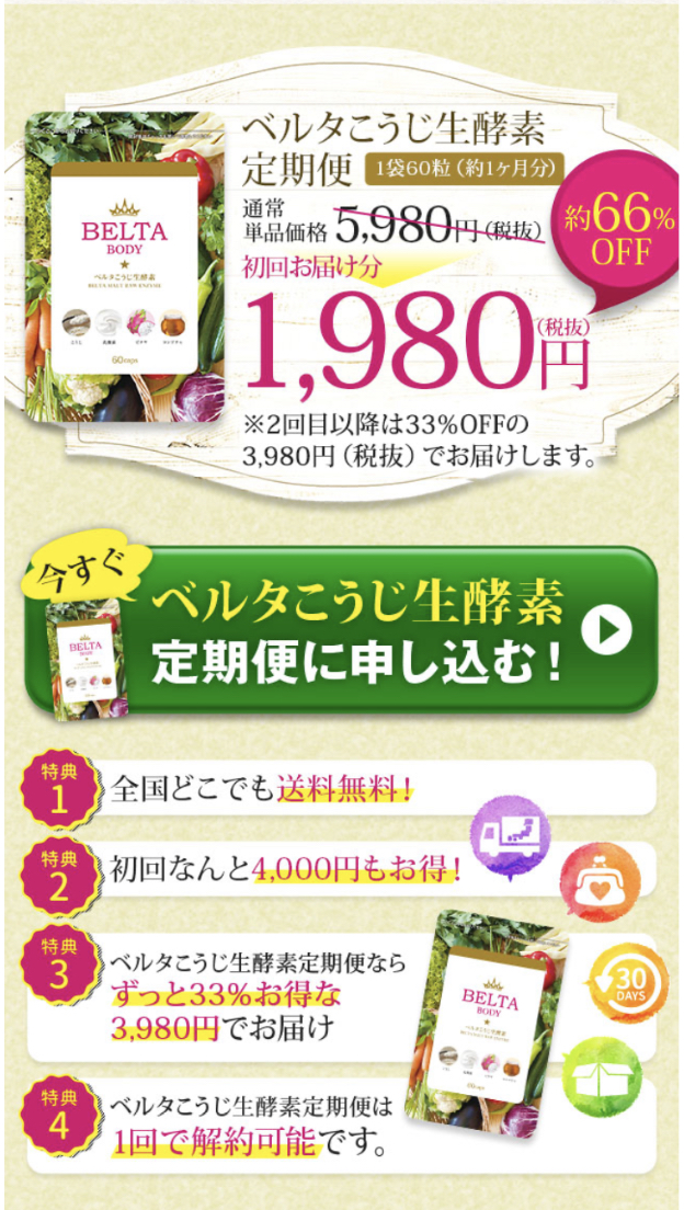 雑誌やメディアで取り上げられて今話題沸騰中の大人気【ベルタこうじ生酵素サプリ】がWEB限定でキャンペーンを実施中!