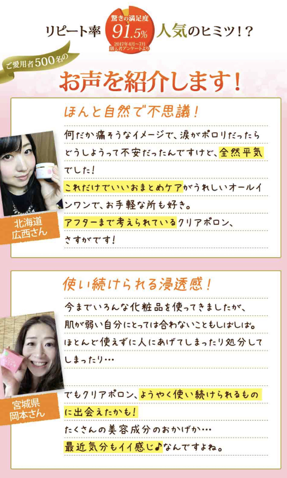 ・満足度93.1%、リピート率87.8%、お悩み解決実感85.9%、うるおい使用実感93.1%