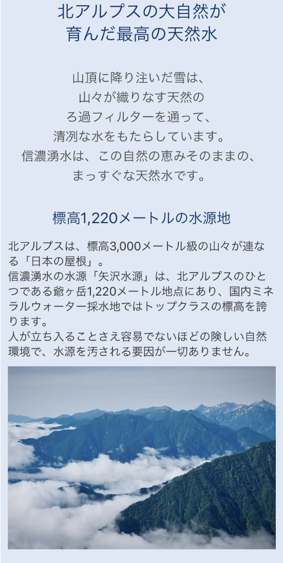 水質:天然水(長野県北アルプスの天然湧水、採水地:長野県大町市)