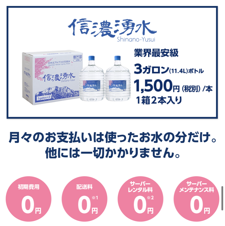 アルピナ同様、信濃湧水も業界トップレベルのお求めやすさ。