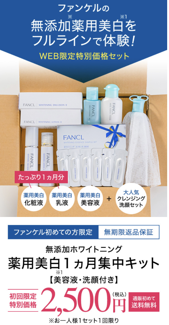 | ファンケルから待望のプログラム登場!無添加ホワイトニング 透明美白1ヵ月集中キット【美容液&洗顔付き】