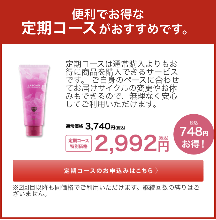 20%OFFで購入できる【定期購入】がおススメです。定期回数の縛りも無く、送料無料なので気軽に購入ができます。