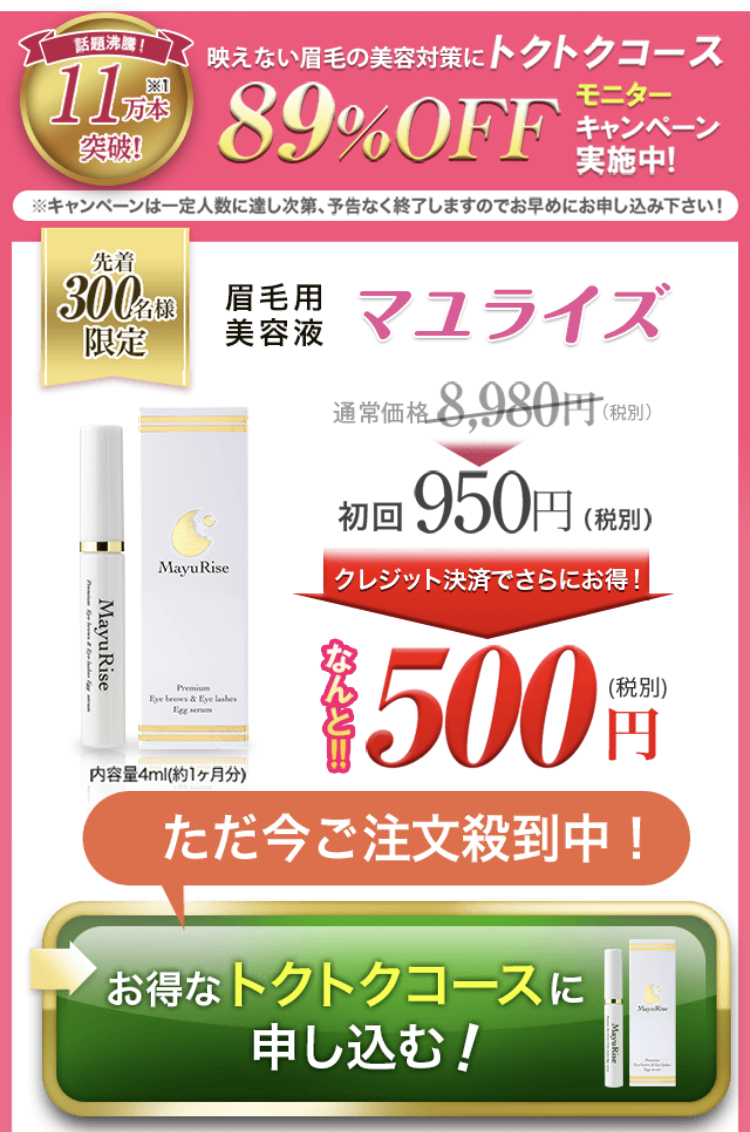 雑誌やメディアで取り上げられて今話題沸騰中の大人気【眉毛専用美容液「マユライズ」】がWEB限定でキャンペーンを実施中!