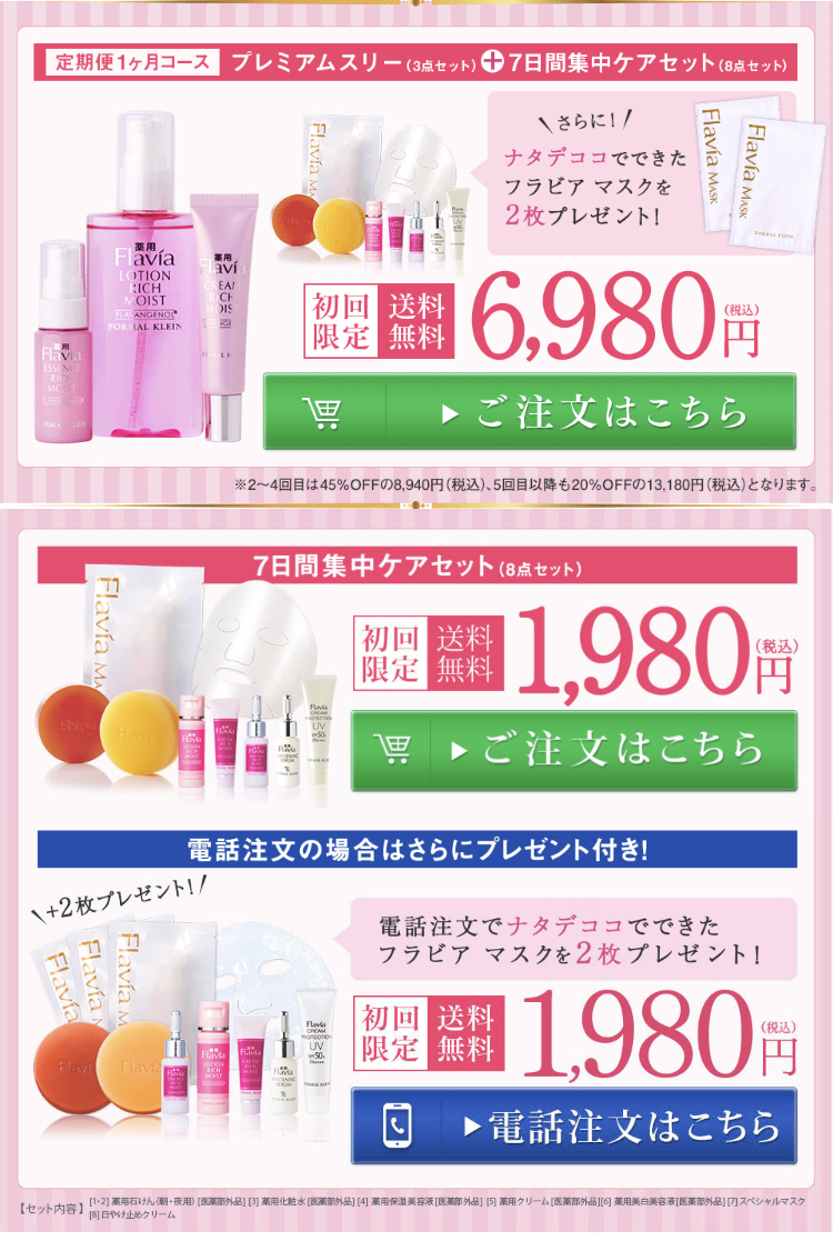 「フラビアシリーズ」がお試しできる「7日間集中ケアセット」。