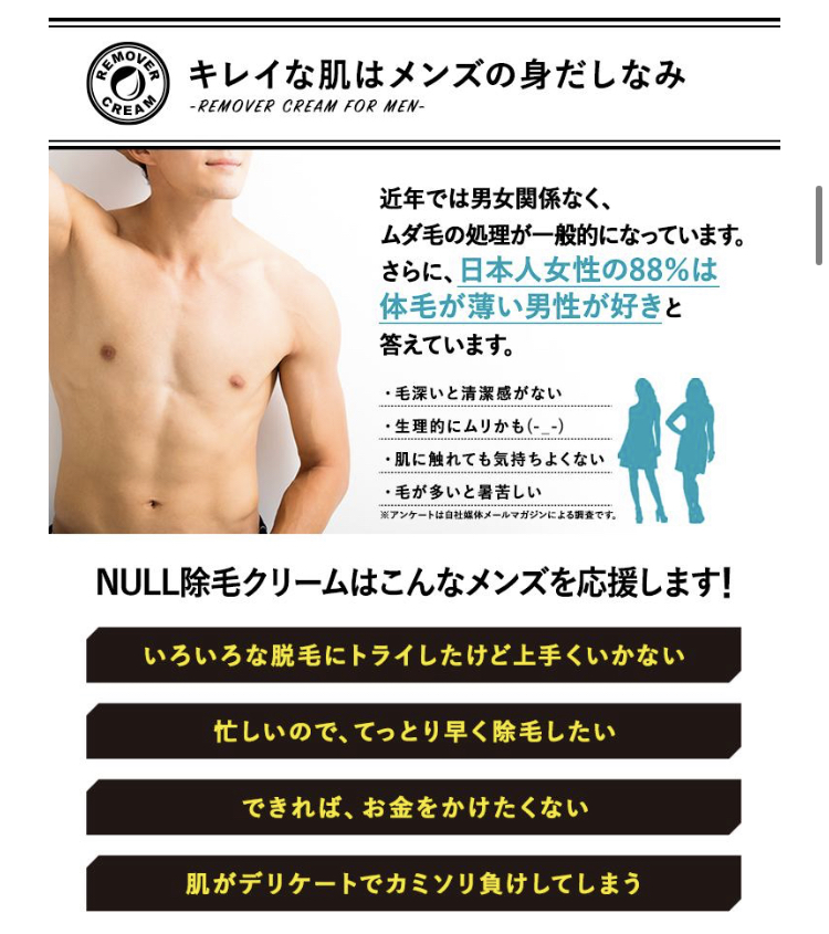雑誌やメディアで取り上げられて今話題沸騰中の大人気【「メンズ専用 NULLリムーバークリーム」】がWEB限定でキャンペーンを実施中!
