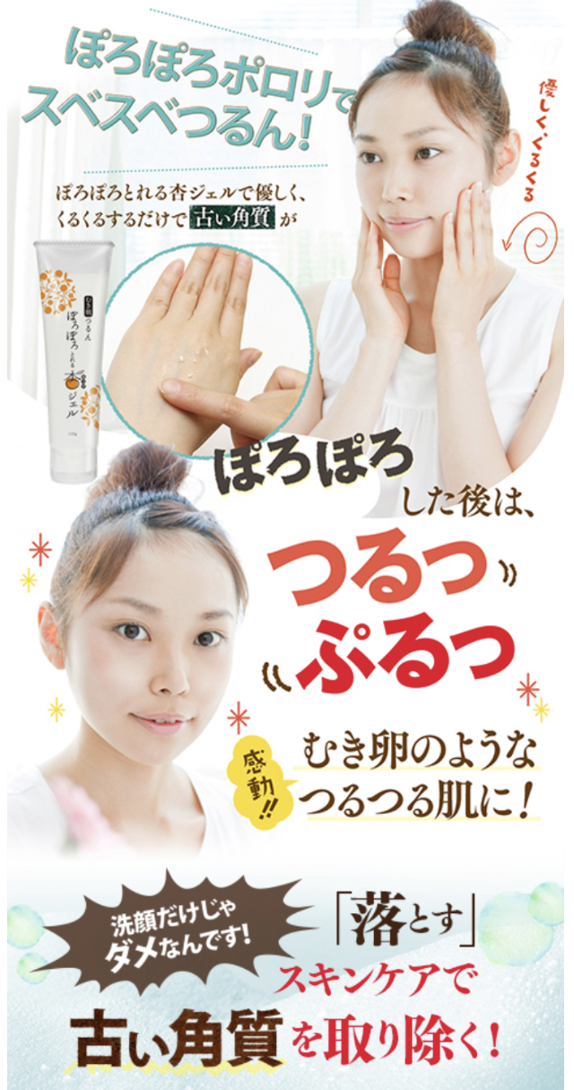 年齢を重ねるにつれて出てくる、目元・口元・首まわりのポツポツ、古い角質によるくすみやザラザラ肌。小鼻の黒い毛穴汚れ。不摂生を続けたときに出る肌トラブルや、かかとのガサガサ。『ぽろぽろとれる杏ジェル』は、そんなお悩みにリーチする、97.7%自然原料を使用したやさしいジェルです。