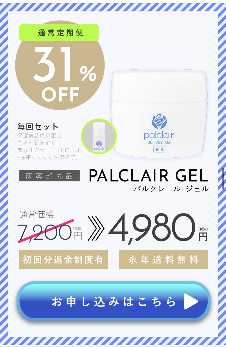 雑誌やメディアで取り上げられて今話題沸騰中の大人気【背中・あごの大人ニキビに!「パルクレールジェル」】がWEB限定でキャンペーンを実施中!