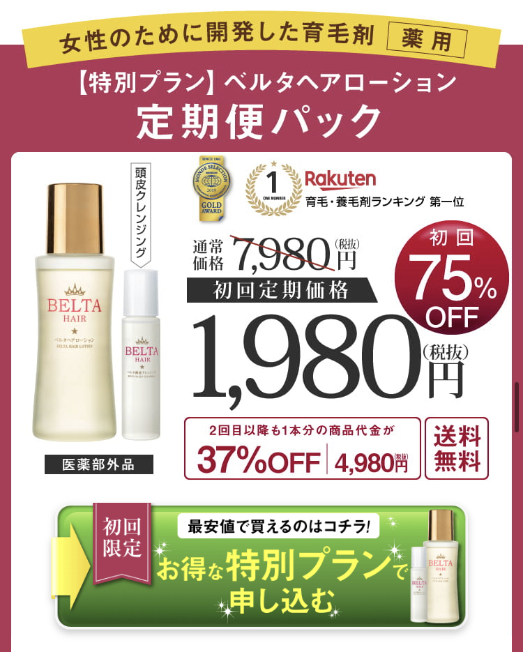 雑誌やメディアで取り上げられて今話題沸騰中の大人気【女性のための育毛剤ベルタヘアローション】がWEB限定でキャンペーンを実施中!